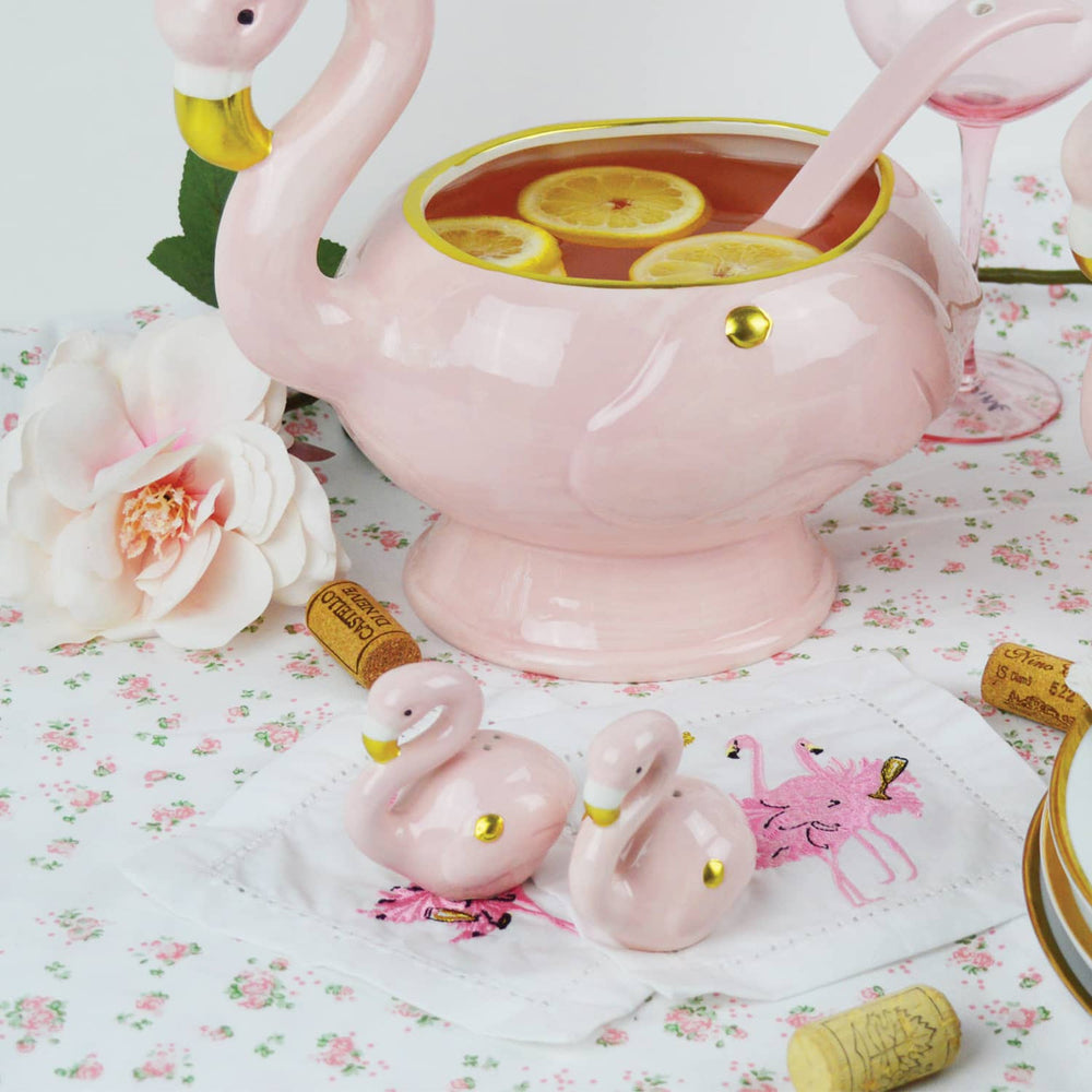 Take your next dinner party to the next level with this elegant Flamingo Salt & Pepper Shaker Set. Featuring cute, petite flamingos, these shakers will bring a unique and stylish twist to any dinner table. Perfect for a beach bash, bridal shower, gender reveal or birthday party – no matter the occasion, these shakers are sure to impress! Crafted from ceramic and standing at 3.25" x 3.25" x 5.75", you can pair them with other flamingo decor and linen items for a striking summer soiree. Make every dinner memorable with our Flamingo Salt & Pepper Shaker Set – add it to your kitchen or dining table today!